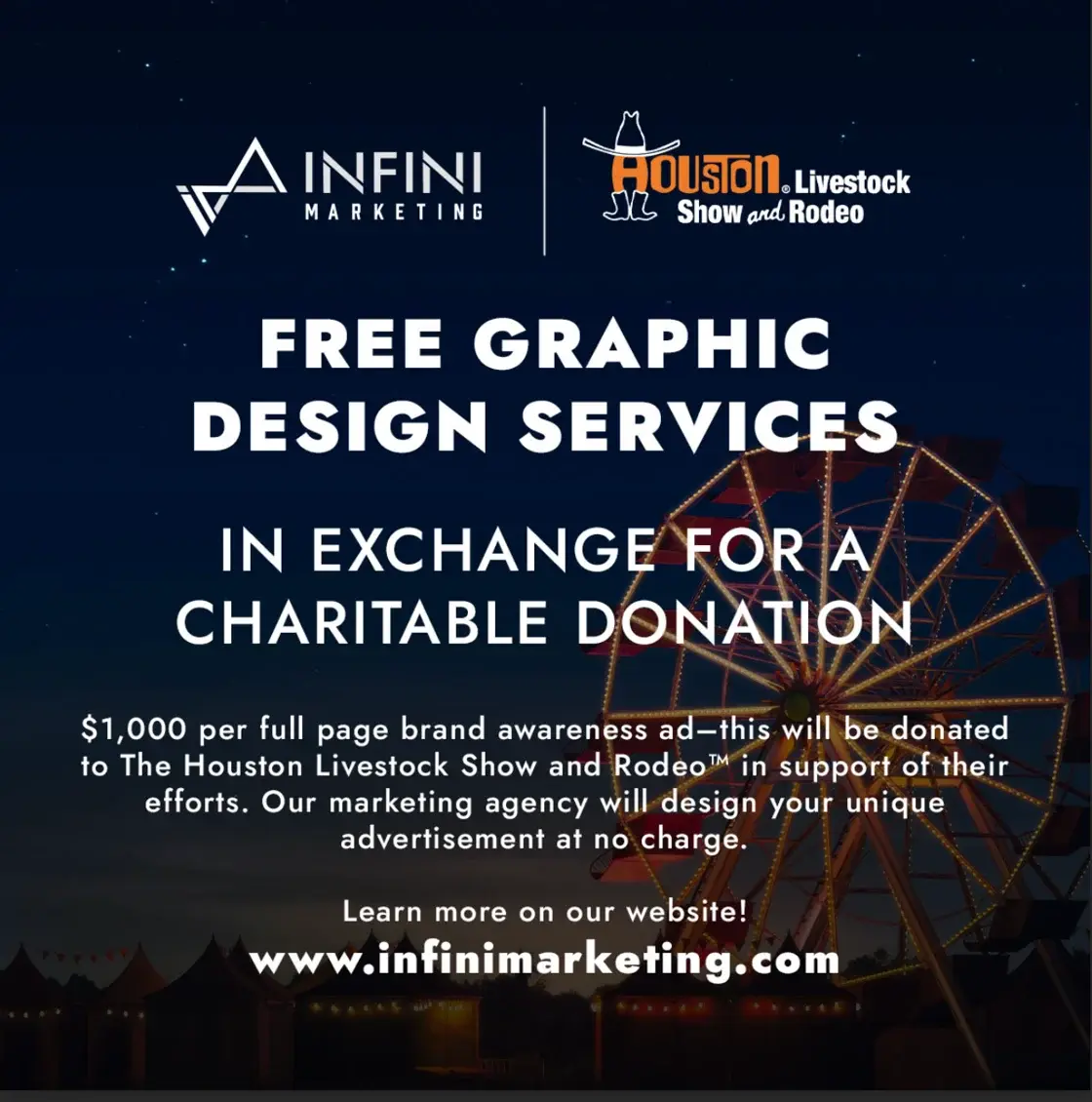 Looking for a sure-fire way to get your brand out there? INFINI Marketing is offering FREE graphic design services in exchange for your $1,000-donation to the Houston Livestock Show and Rodeo nonprofit charity.